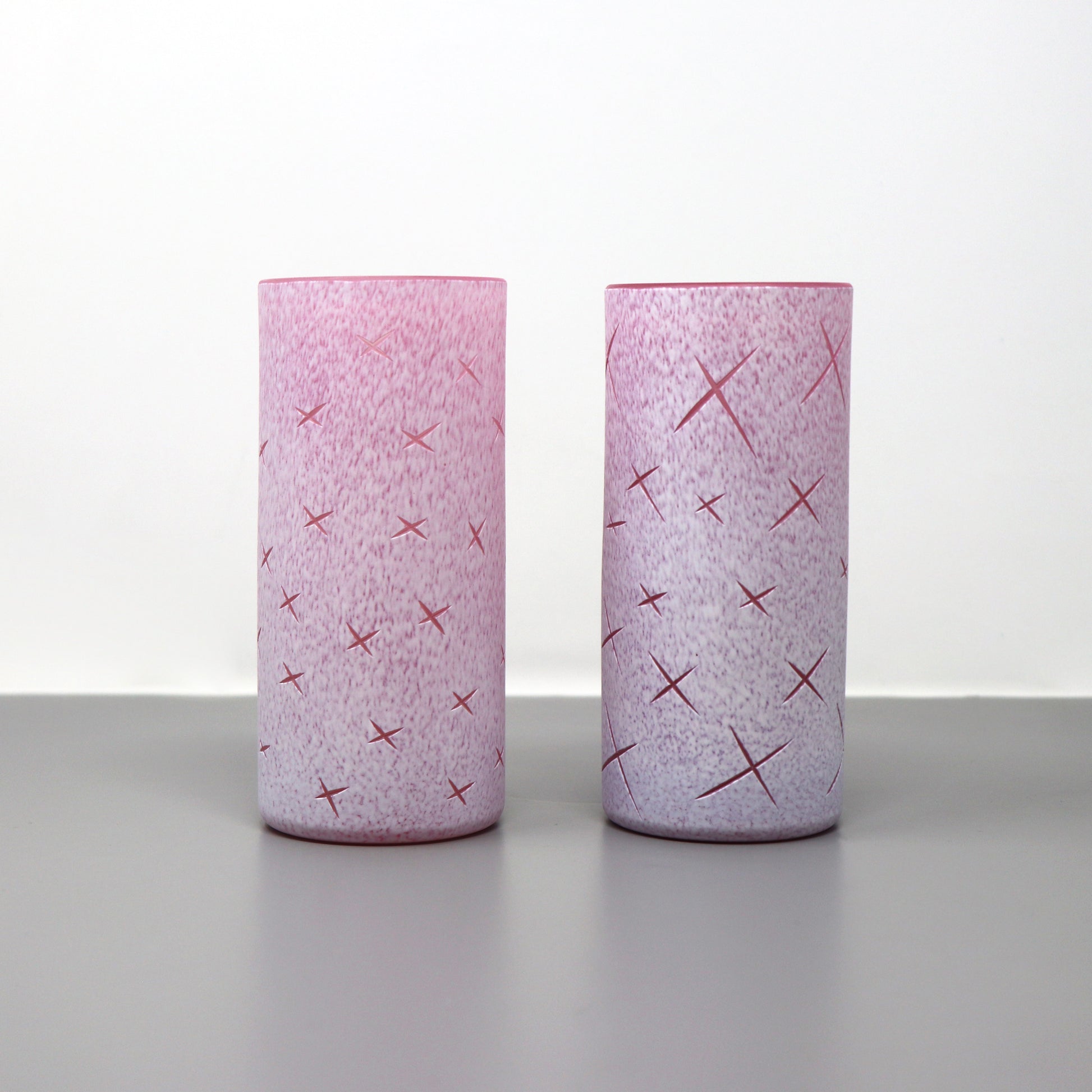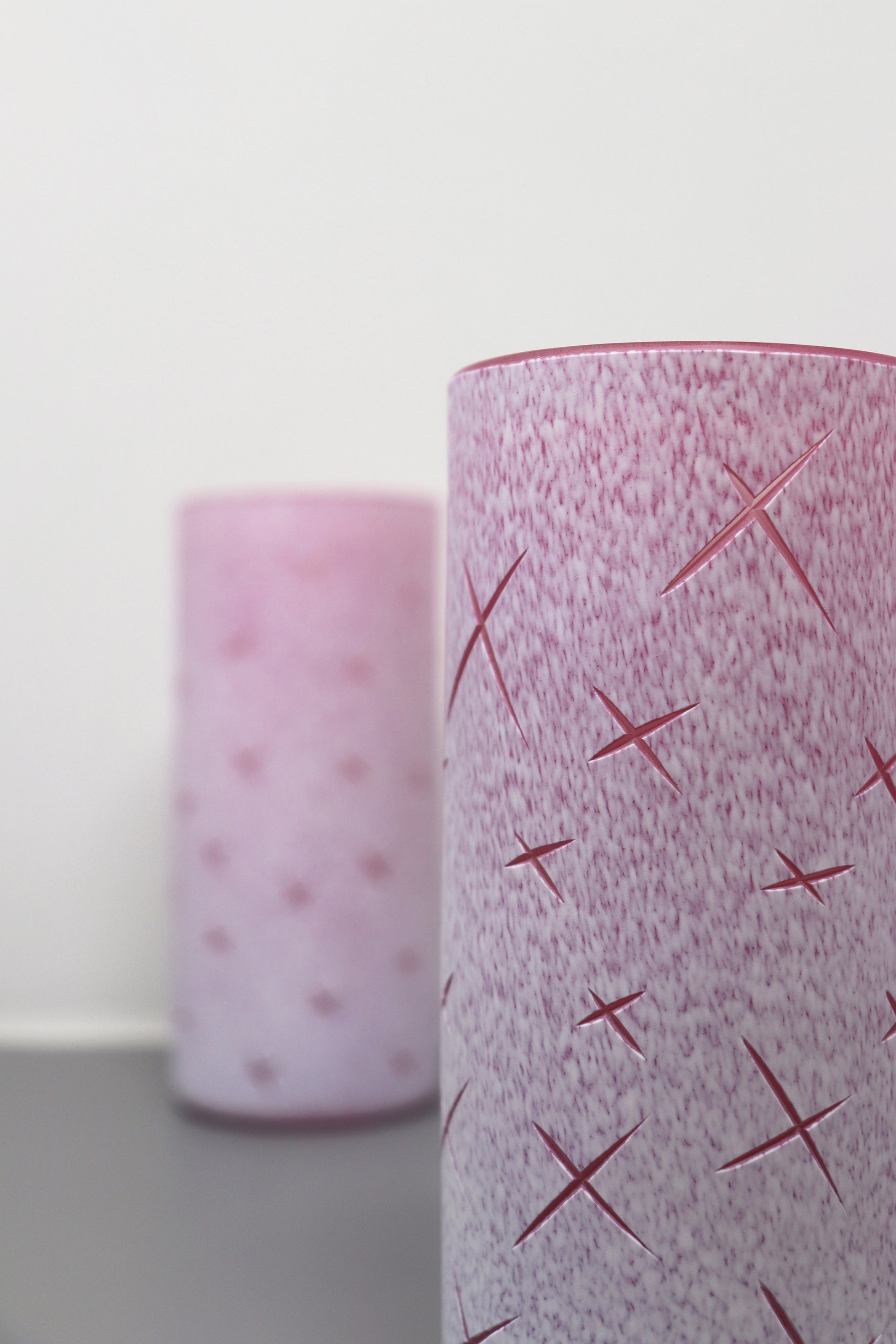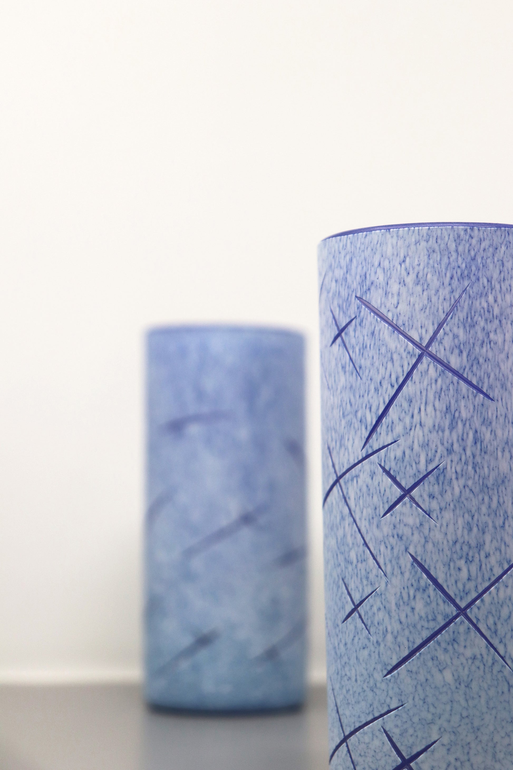 Sarabeth Post creates her signature relief patterns by hand carving through layers of colored glass, and we love the way she juxtaposes playful mark-making with traditional drinkware forms. Great individually, or mix and match to create a set!