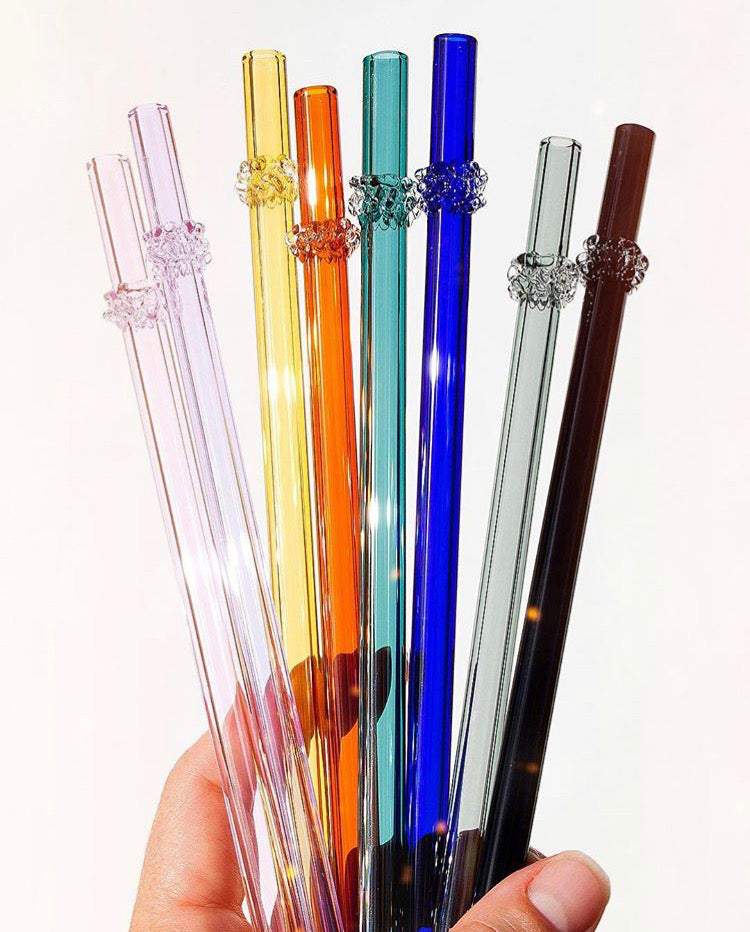 Clear Glass Drinking Straw with Accent Color