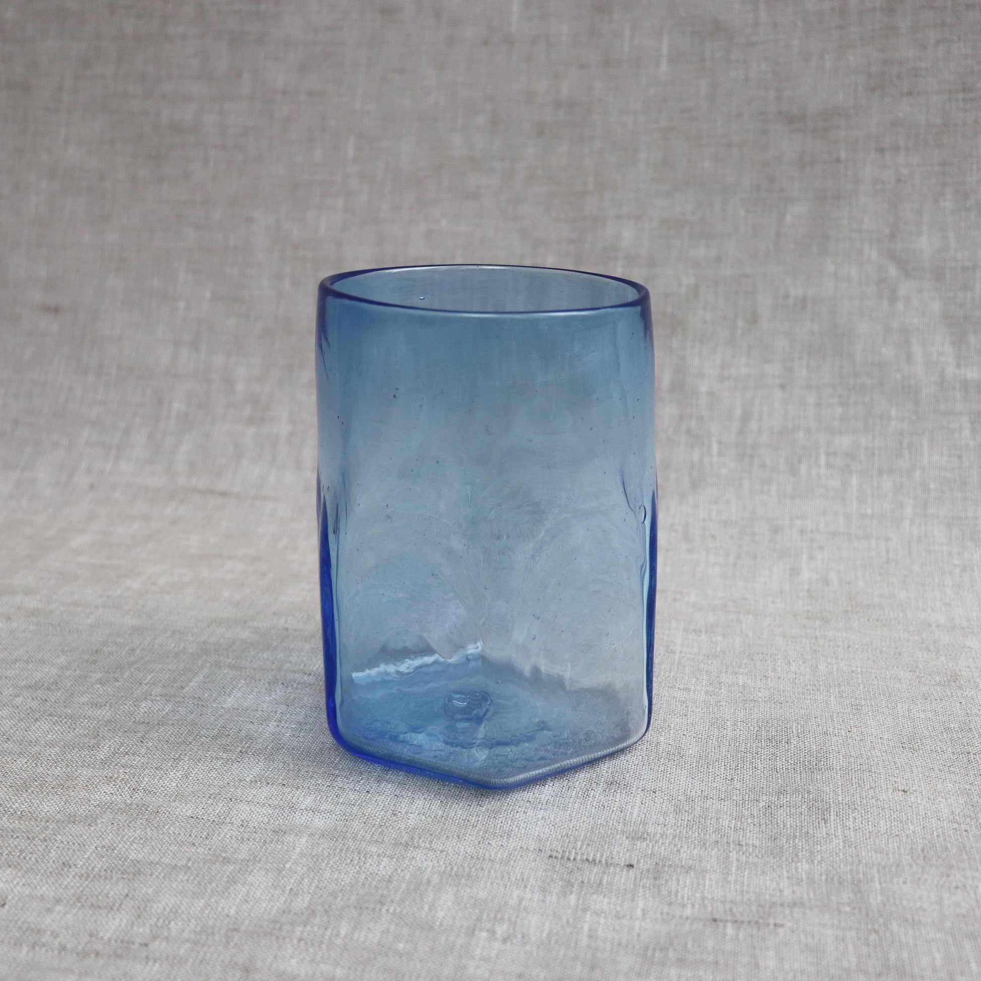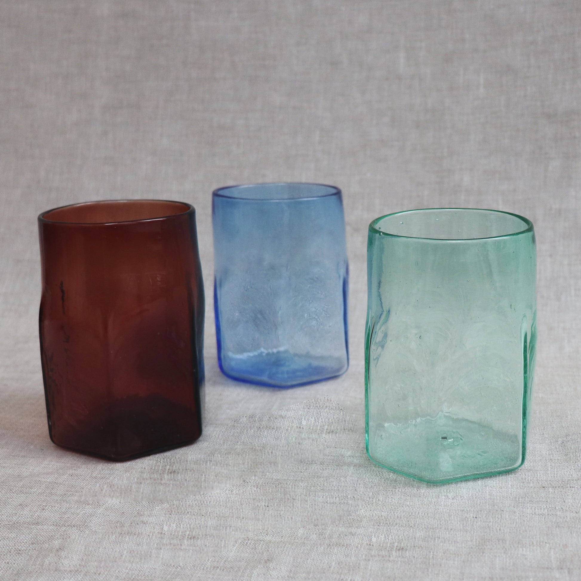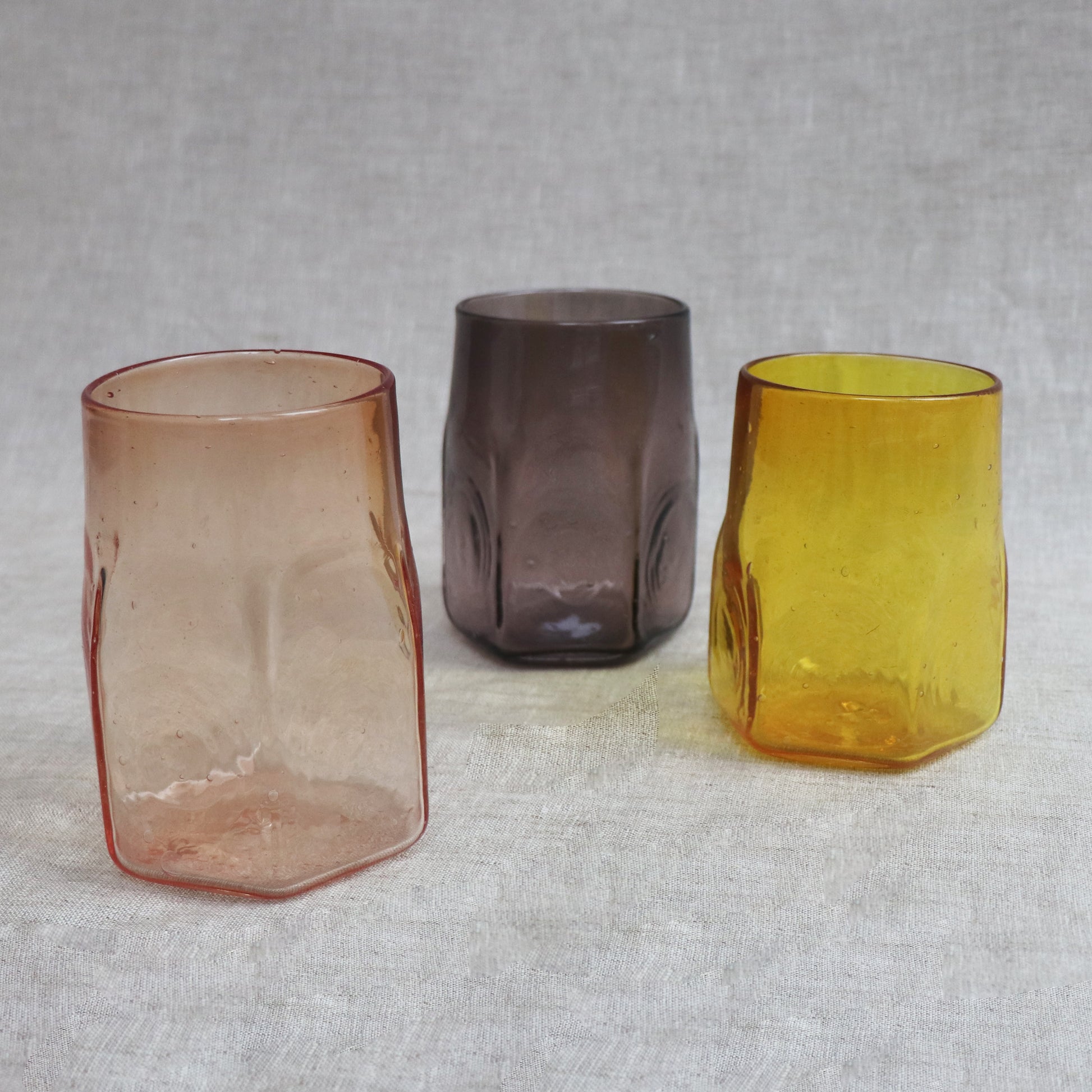 Each tumbler is hand-blown but roughly measures 4.5 inches tall and 3 inches wide.