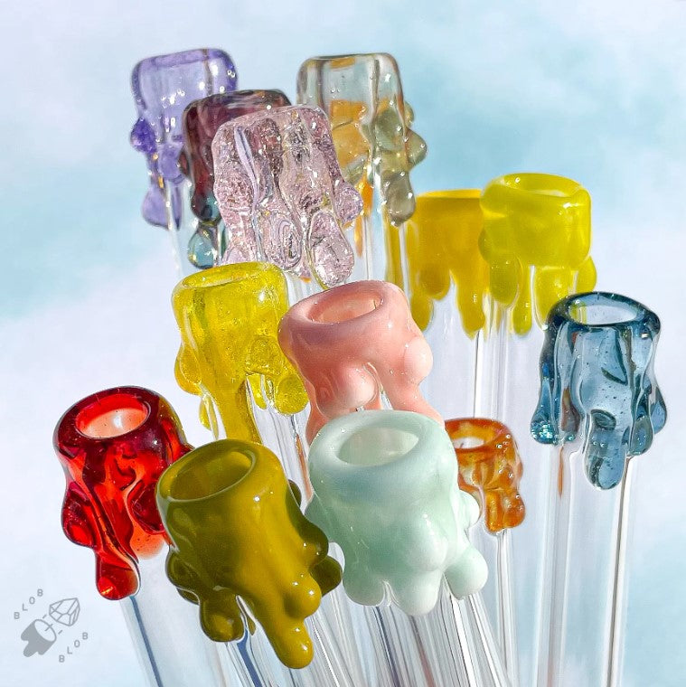 Durable and reusable, these blobby borosilicate glass straws are a fun way to enjoy any drink, especially frozen drinks and smoothies.
