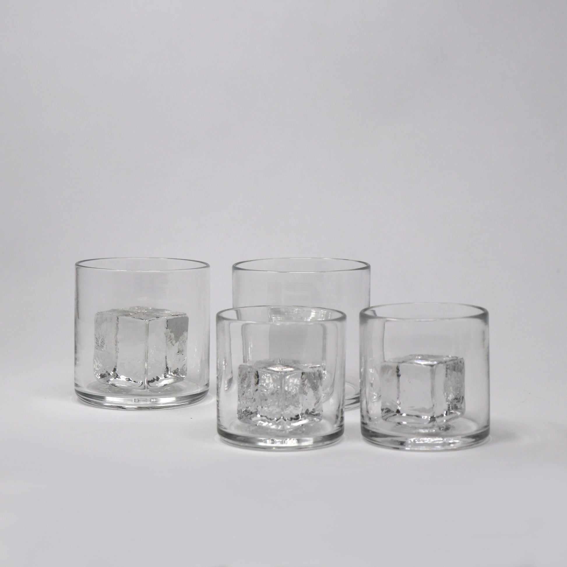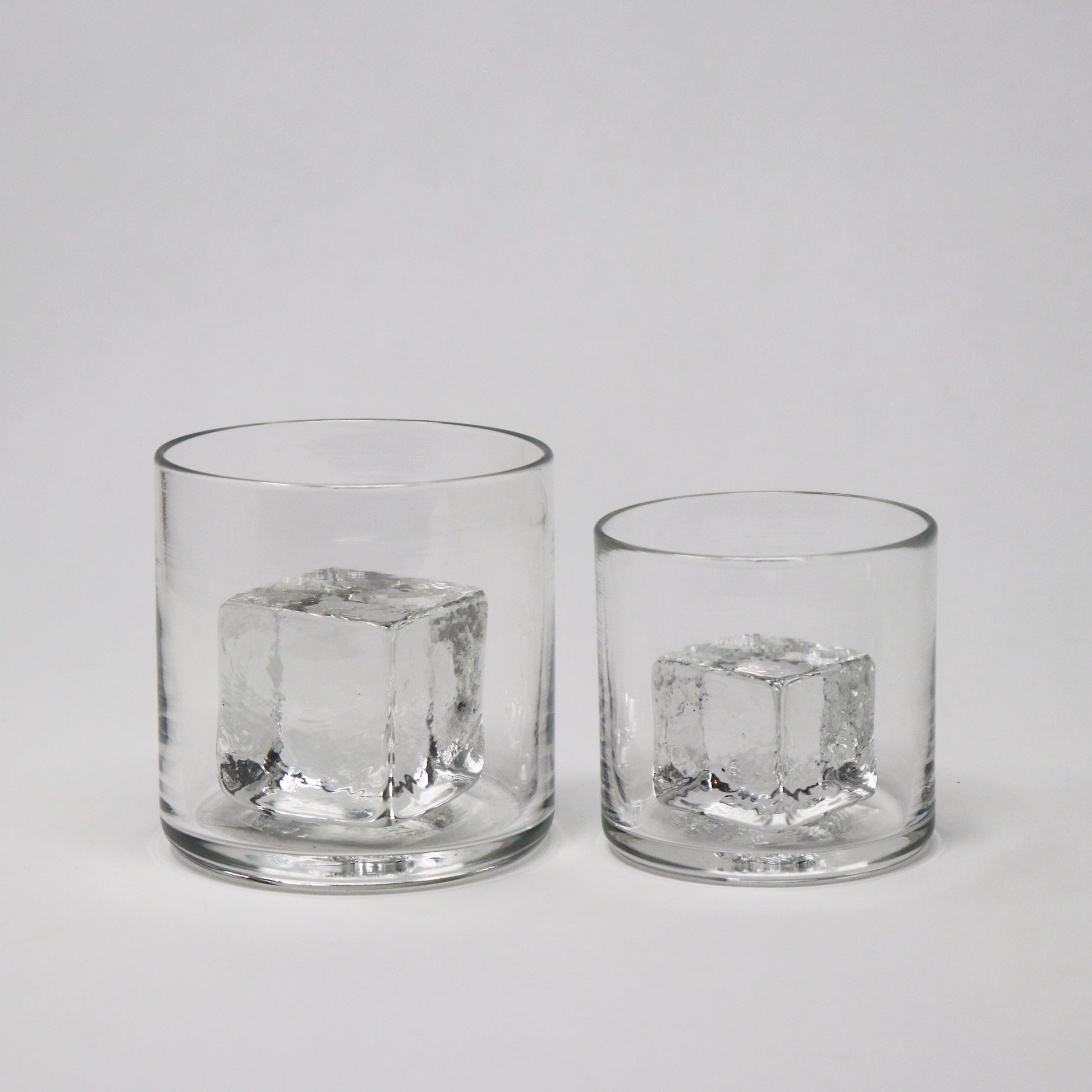 The Petite Cube Glass measures 3" x 3" and comes with a solid-glass cube fused inside.